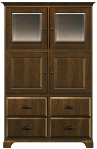 Howard Miller 930-002PS002J -Personal Storage Cabinet. -Made from hardwood and veneers. -Available in several finishes. -Two doors with beveled glass and four doors with raised panels. -Six adjustable interior shelves. -Cove pediment top and cove foot. -Hardware: knobs on doors. -Overall Dimensions: 78" H x 50.24" W x 17" D.